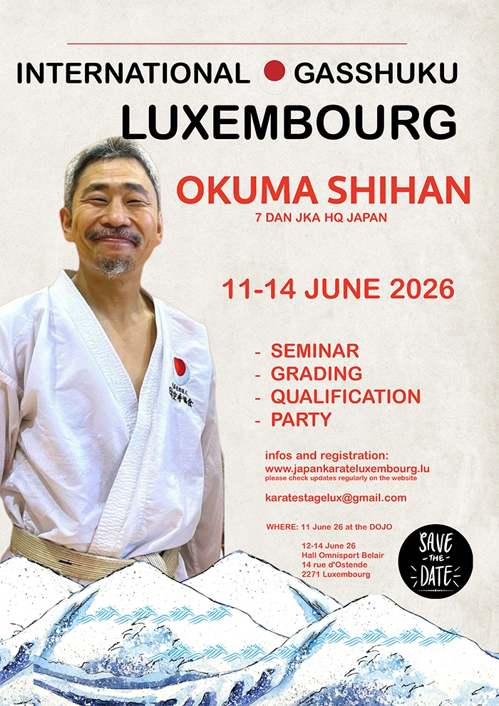 Download The form, fill out “JKA DAN EXAMINER Form” has to be send by mail to the karatestagelux@gmail.com before 25th May 26.